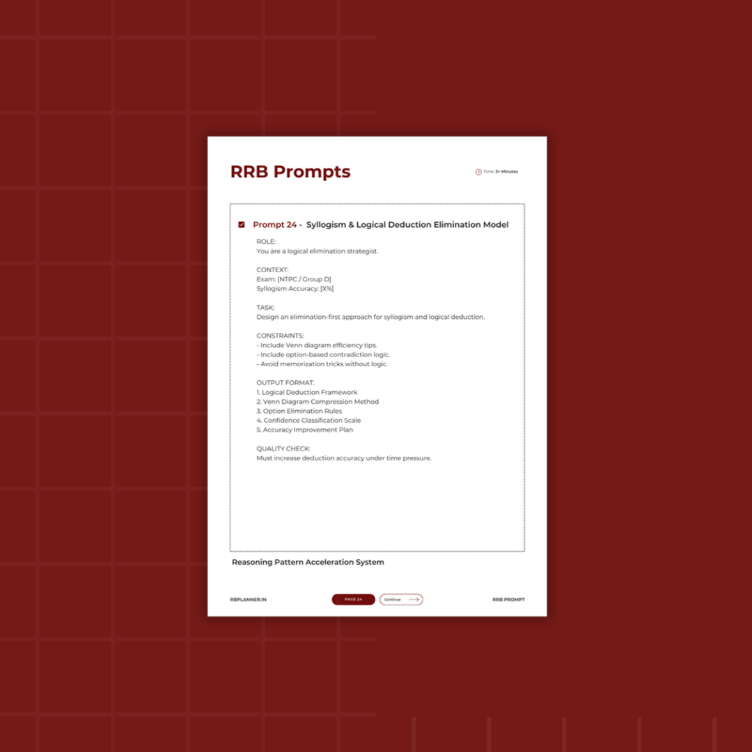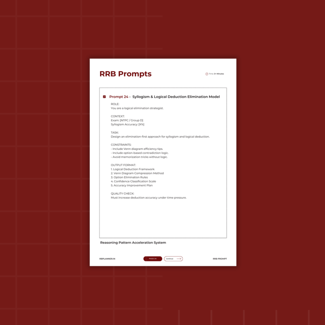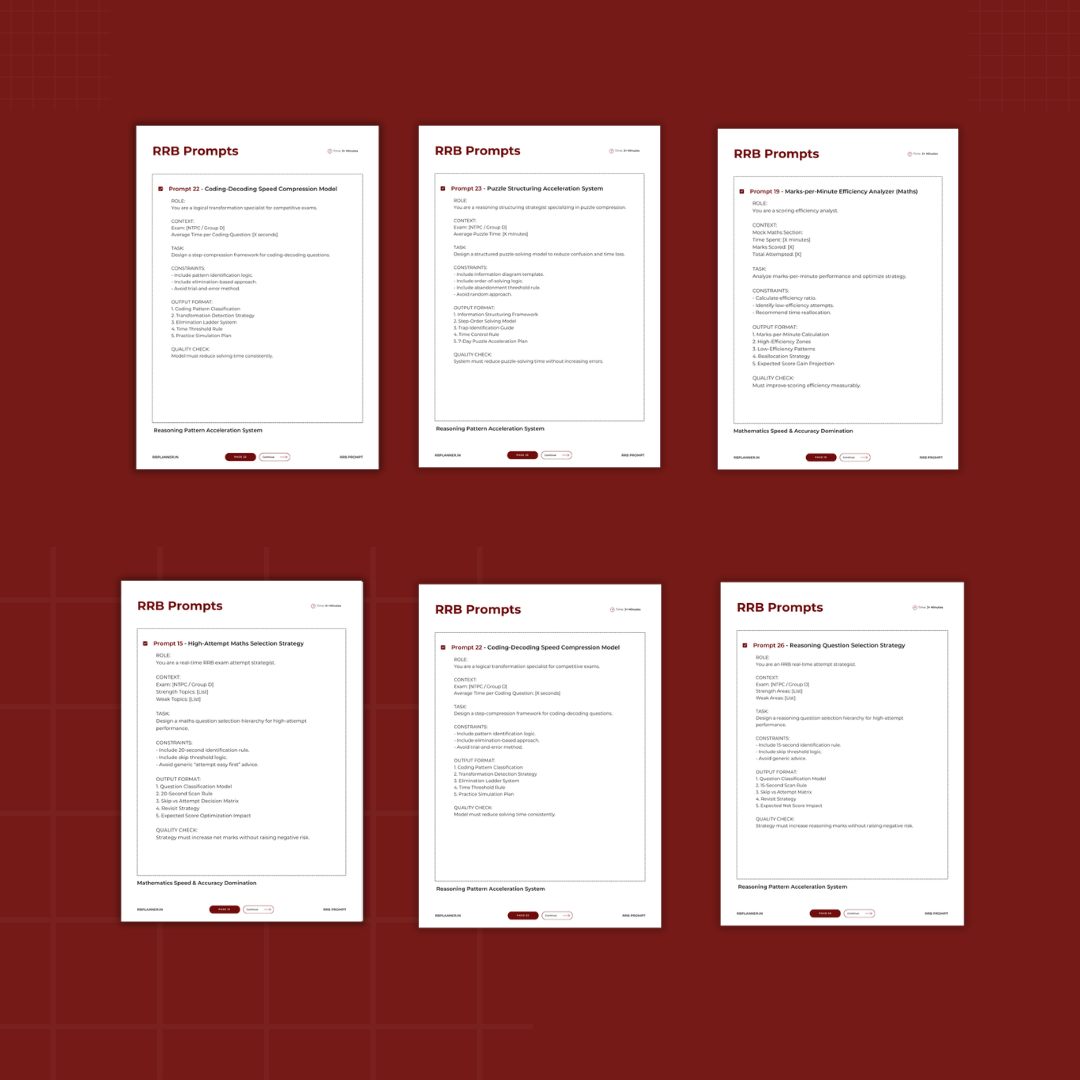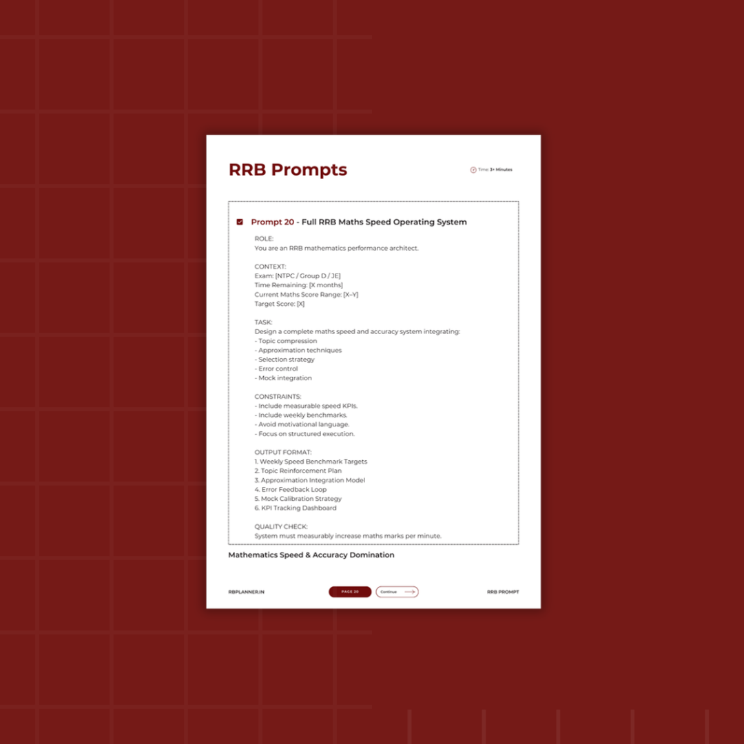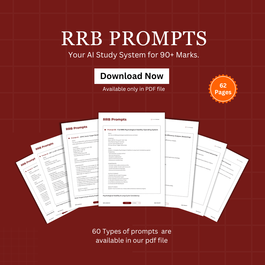 The RRB Performance Prompt System is a collection of 60 professionally structured ChatGPT prompts designed specifically for Railway exams.
